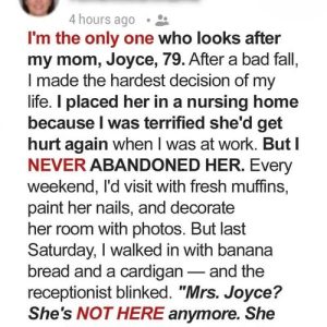 I was the only one looking after my mom, Joyce. At 79, she was still spirited, but after her fall, everything changed. She could barely walk on…