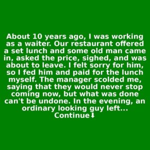 About 10 years ago, I was working as a waiter at a small restaurant. We offered a set lunch at a reasonable price, and one day, an…
