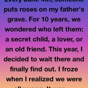 Every June 4th, roses appeared on my father’s grave. For ten years, we wondered who left them. This year, I waited by the fence to find out….