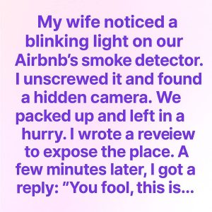 While staying at an Airbnb, my wife noticed a blinking light on the smoke detector. When I checked, I found a tiny hidden camera inside. Heart pounding,…